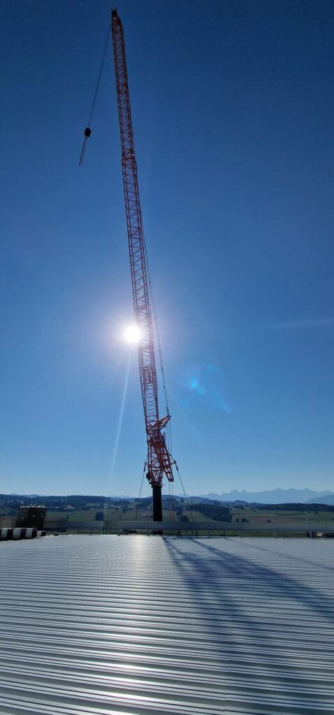 Mit einem der größten Mobilkräne der Schweiz – einem 700-Tonnen-Kran der Firma Friderici – haben wir sieben Regalbediengeräte von Swisslog bei Nespresso in Romont erfolgreich eingebracht. Die hohen Sicherheitsanforderungen in der Schweiz und bei Nespresso selbst machten eine speziell angepasste Einbringungsmethodik notwendig.